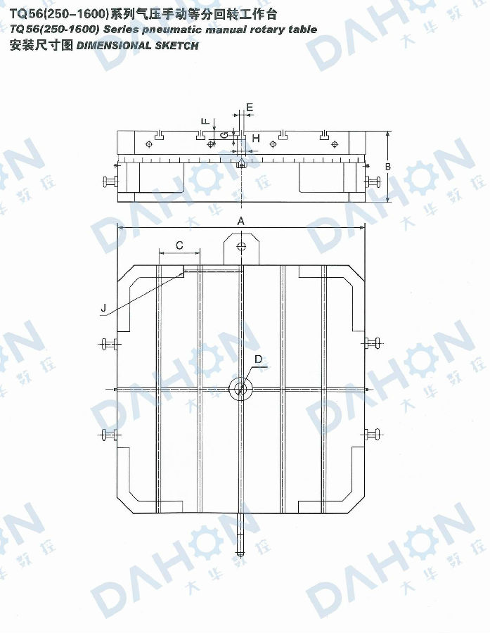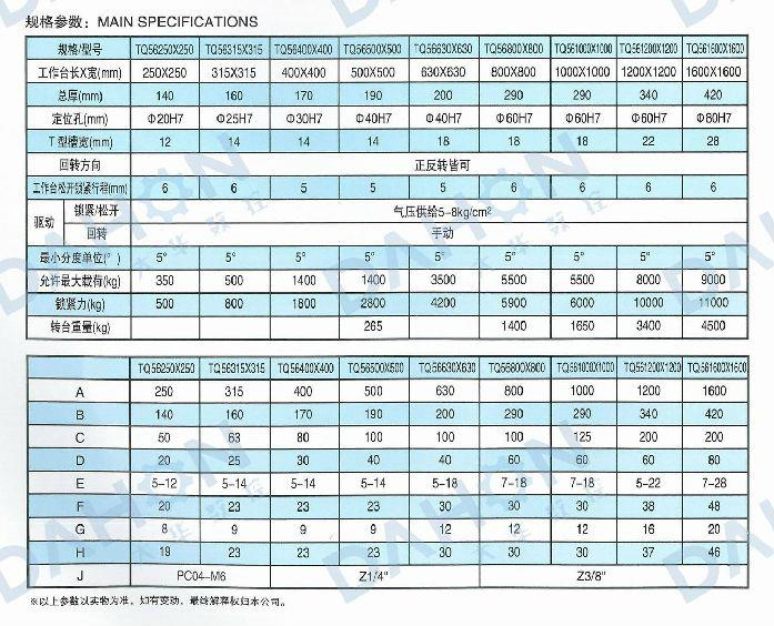 TQ56系列氣壓手動等分轉臺是以端齒盤為分度元件,氣壓抬起、手動轉位的高精度等分轉臺。它轉動力矩小、承載能力大、剎緊可靠,分度精度可達10",重復性3",適用于各類鏜、銑床、磨床等高精度加工場合。(可根據用戶需要設計制作其他規格)